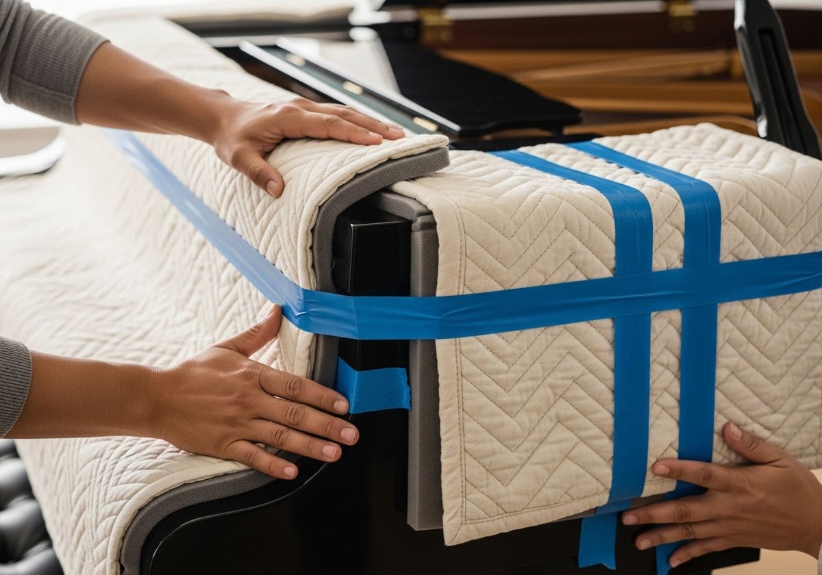 Protecting the piano from scratches and damage is essential. Close and lock the keyboard lid. Wrap the entire piano in moving blankets, using packing tape to secure them in place. Pay special attention to corners and edges, adding extra padding as needed. If you're not comfortable doing this yourself, your packers and movers can handle this for you.